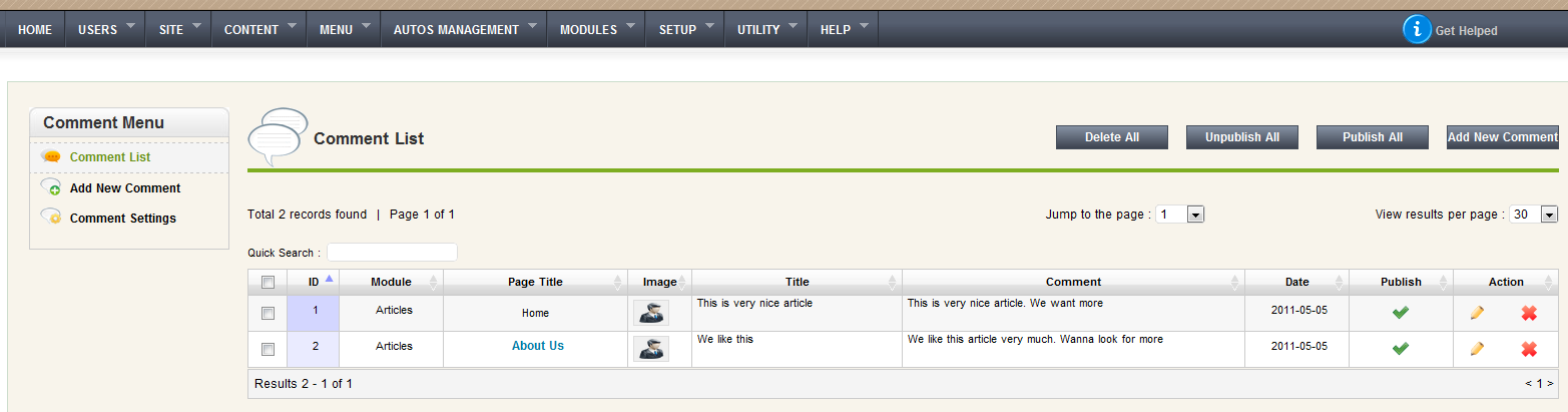 Add, edit and delete Comments.