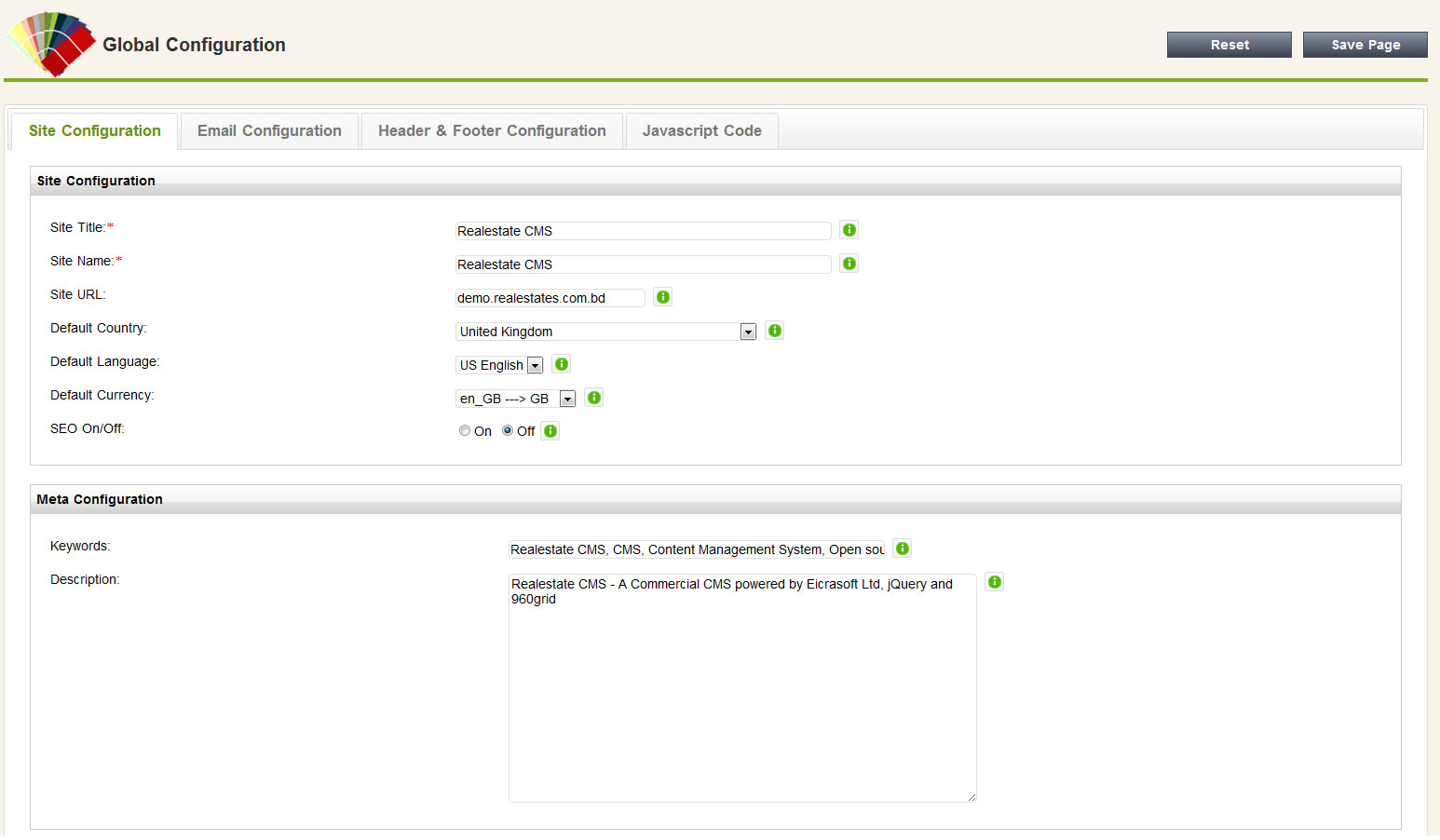 Customize the basic configuration though Global Setting.